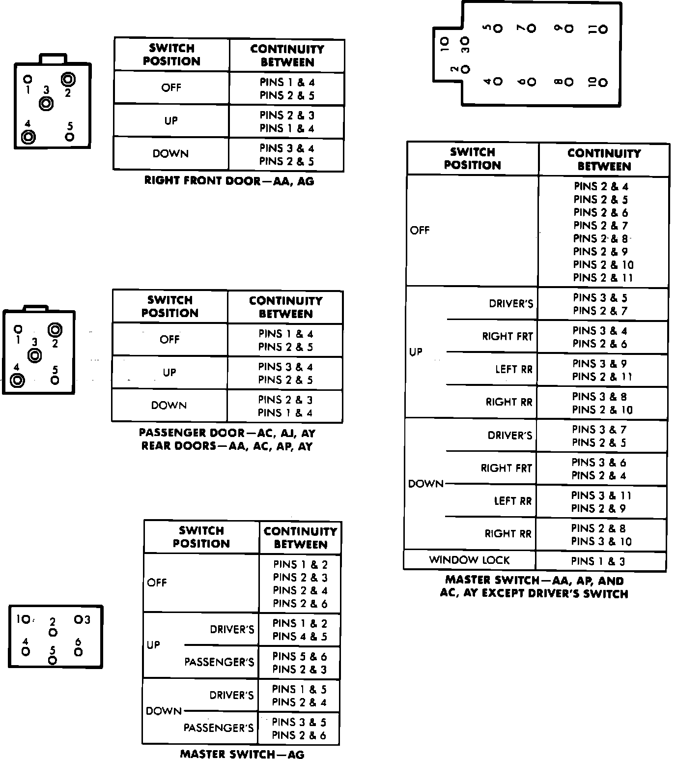 4. Use an ohmmeter to check the switch for proper continuity in the indicated switch positions.