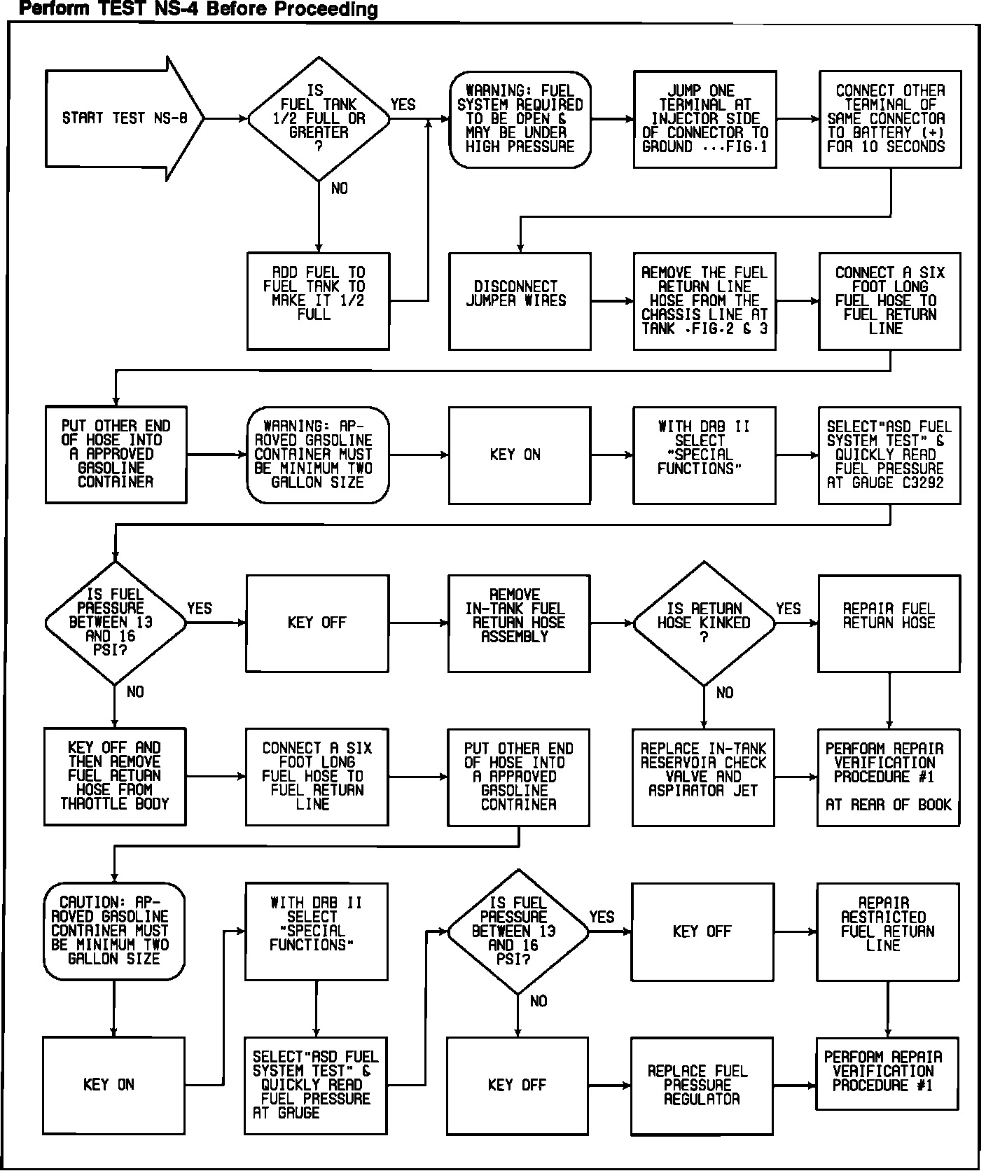 Test NS-8 - Checking For High Fuel Pressure At Pressrue Regulator and Fuel Tank: