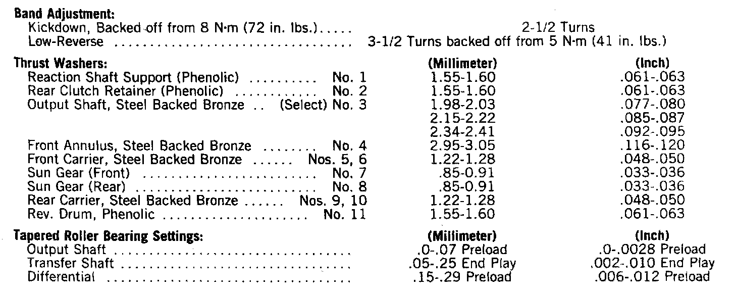 Output Shaft Bearing Shim Chart:
