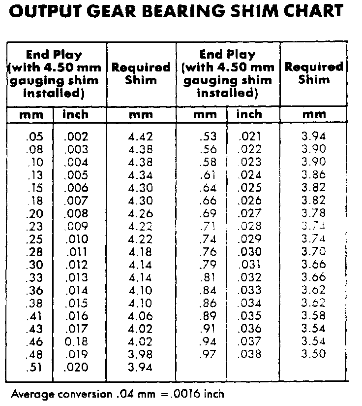 Output Gear Bearing Shim Chart: