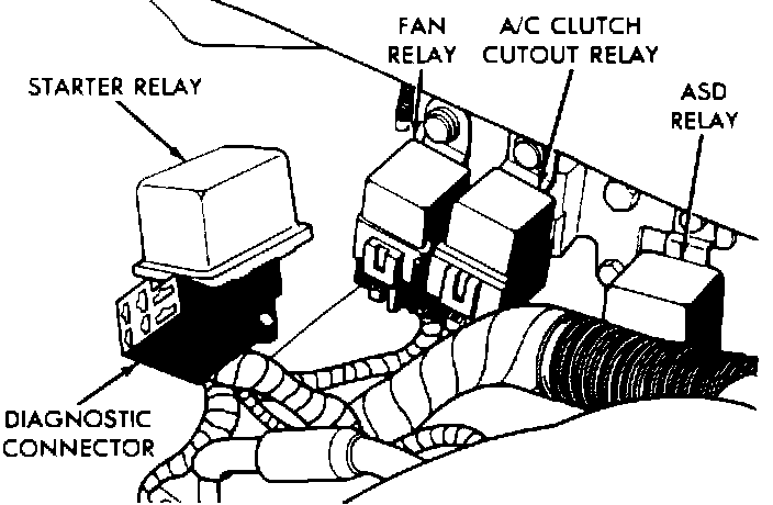 1. Connect the scan tool to the diagnostic connector located in the engine compartment near the Single Board Engine Controller (SBEC).