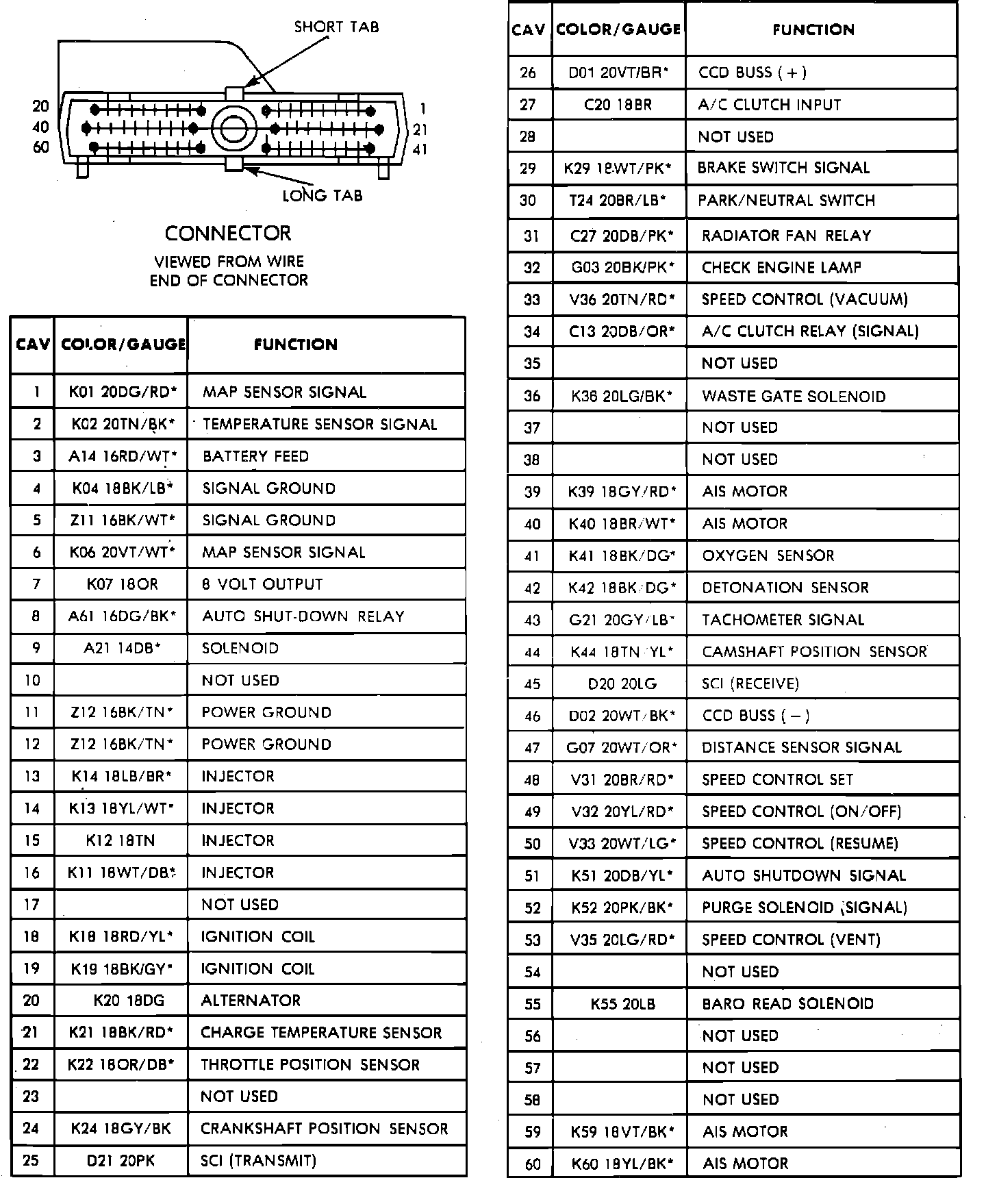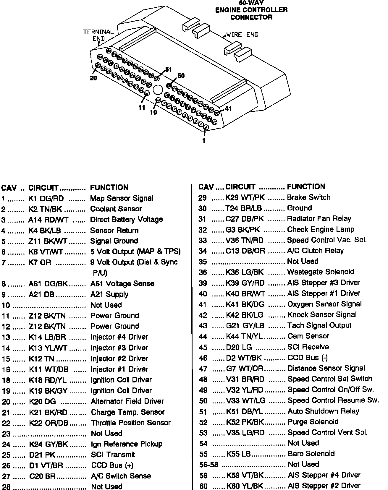 60-Way Connector Pinnout Identification:
