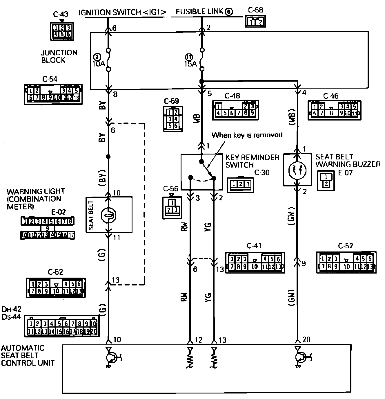 Fig. 123 Warning Light, Key Reminder Switch & Buzzer Circuit Diagram: