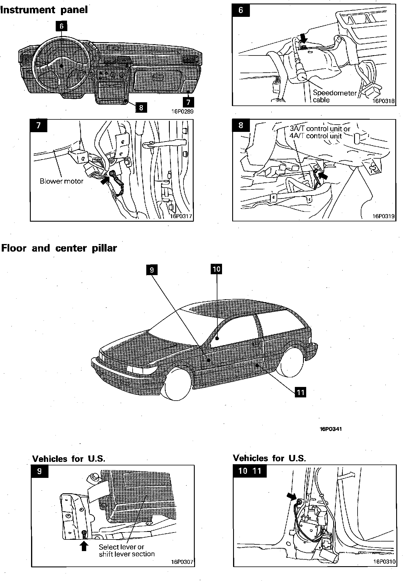Grounding Locations (Instrument Panel, Floor And Center Pillar):