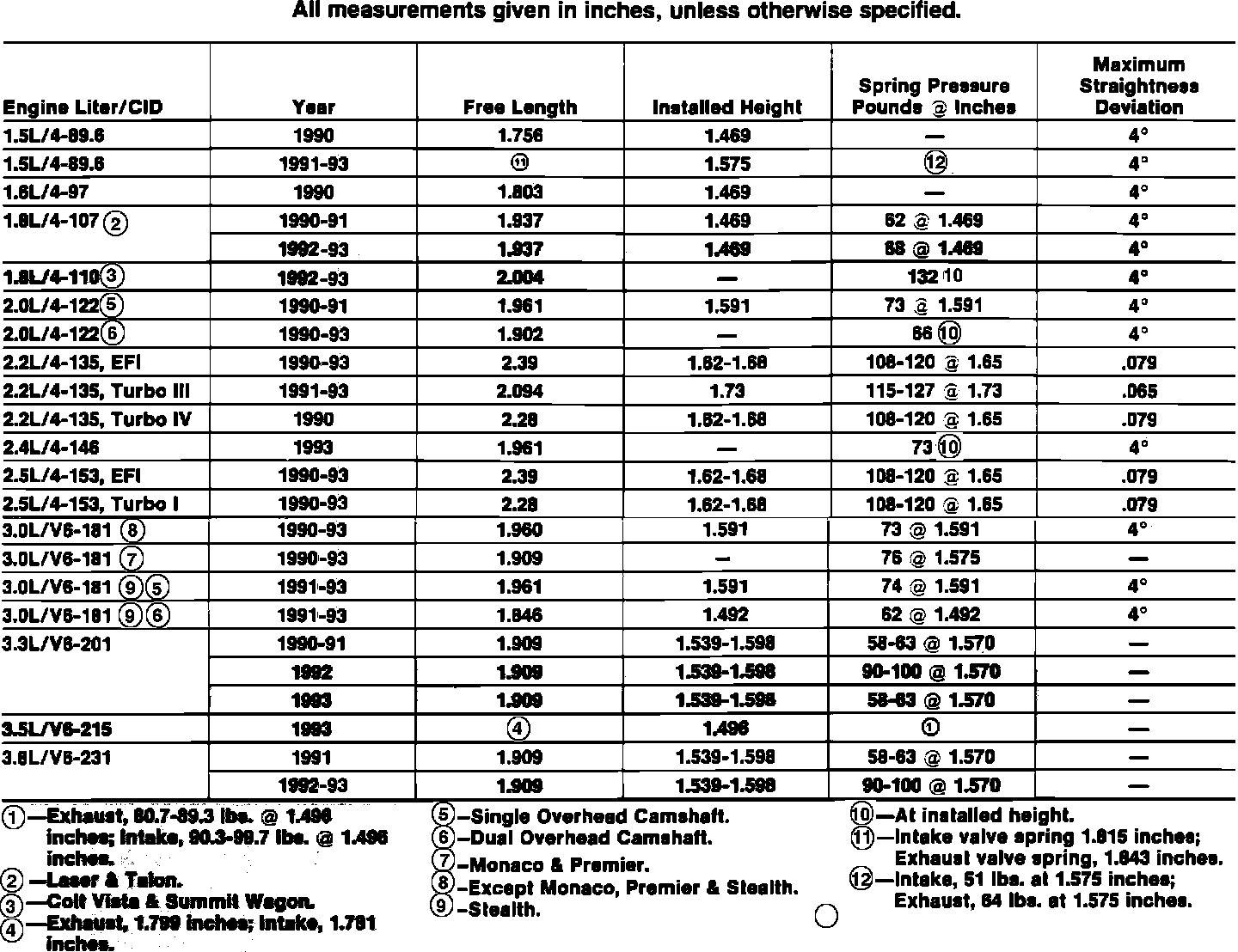 Valve Spring Specifications:
