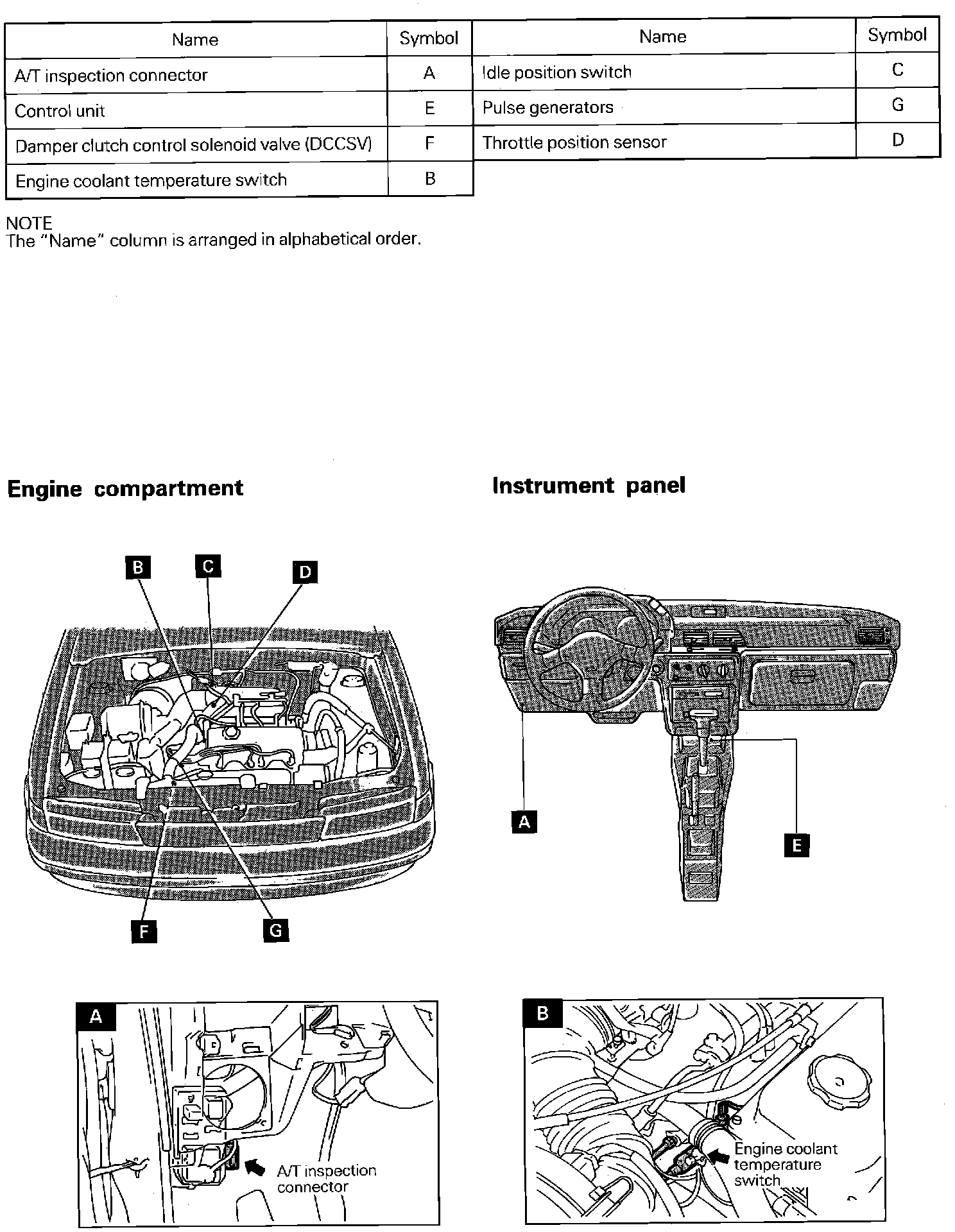 Component/Relay/Switch Locations (Automatic Transaxle, 3-Speed):