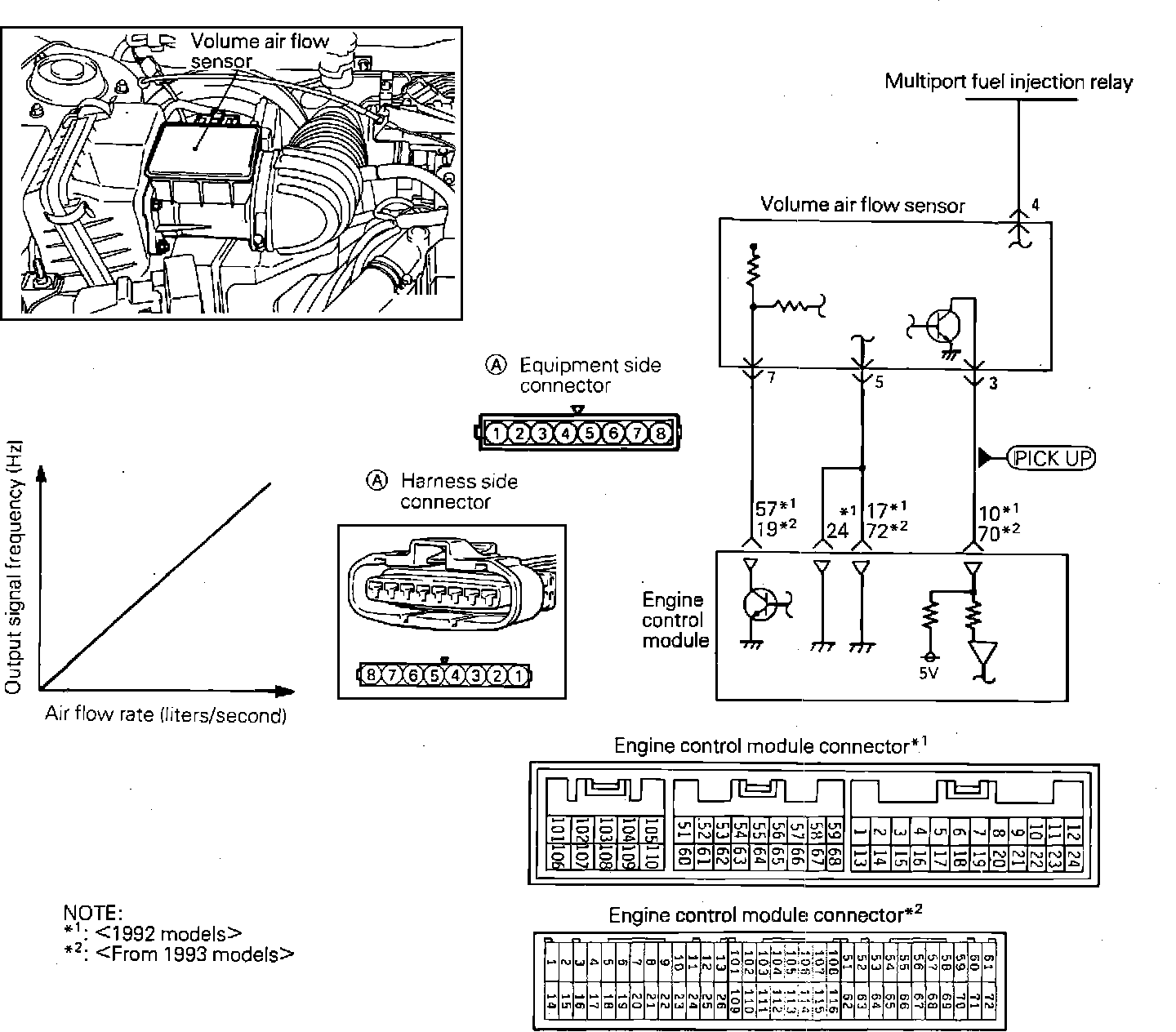 The Air Flow Sensor (AFS) measures the amount of air entering the intake manifold to provide the ECU with precise intake volume information. The AFS is a "Karman Vortex" type which measures the intake air volume.