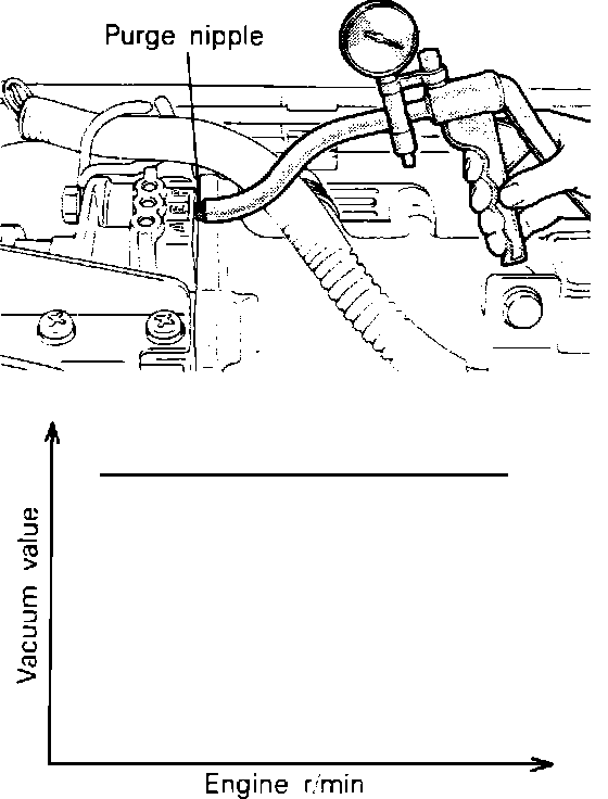 2. Disconnect the vacuum hose (red stripe) from the throttle body purge nipple and connect a vacuum gauge to the nipple.