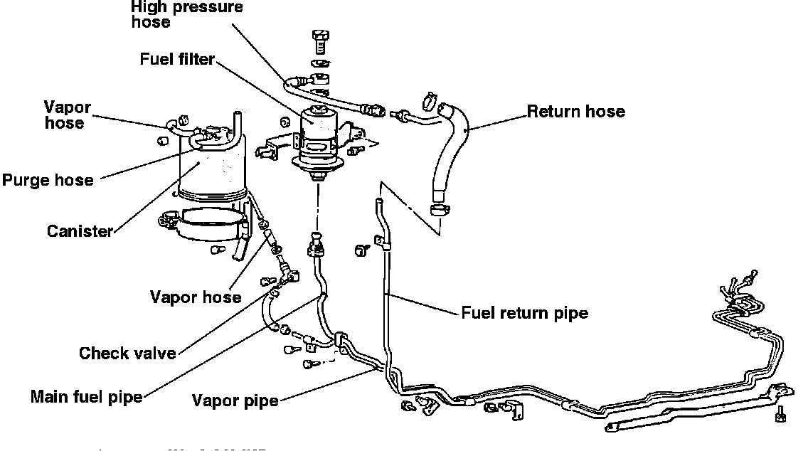 4. Check the fuel rail at all of its attachment points for any sign of leakage.
