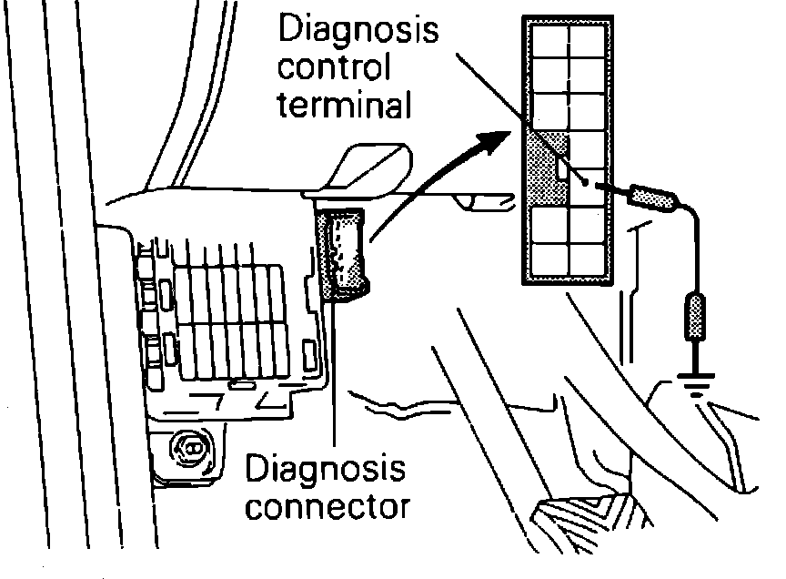 3. With the engine stopped, ground the diagnosis control terminal (Fig. 1).