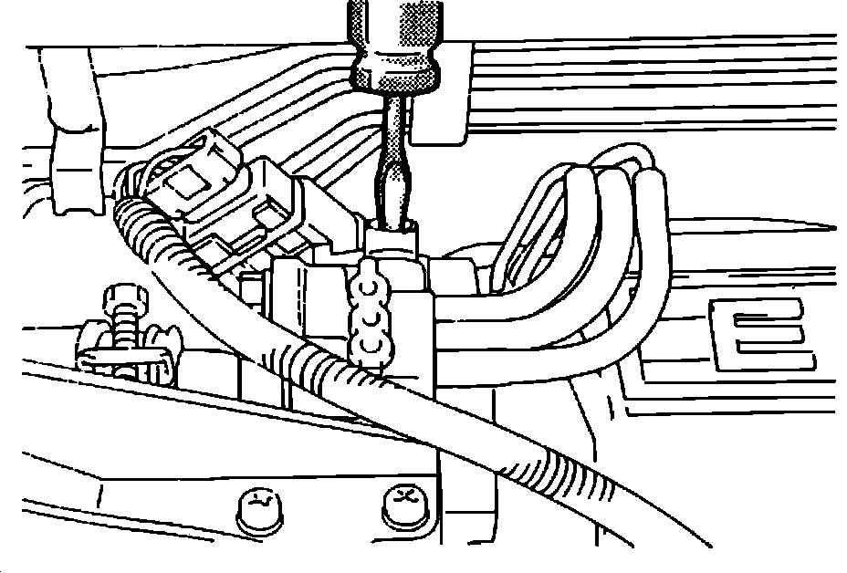 4. With the engine stopped, remove the waterproof female connector from the ignition timing adjustment terminal, located in the engine compartment. Ground the terminal using a lead wire with alligator clips (Fig. 2).