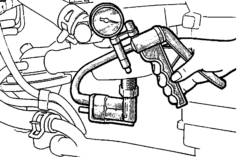 3. When the engine coolant temperature has reached 80°C (176°F) or more, the vacuum applied to the valve should HOLD.