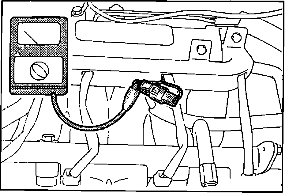 5. With the engine stopped, disconnect the ignition timing adjustment terminal, located in the engine compartment. Ground the terminal using a lead wire with alligator clips (Fig. 2).