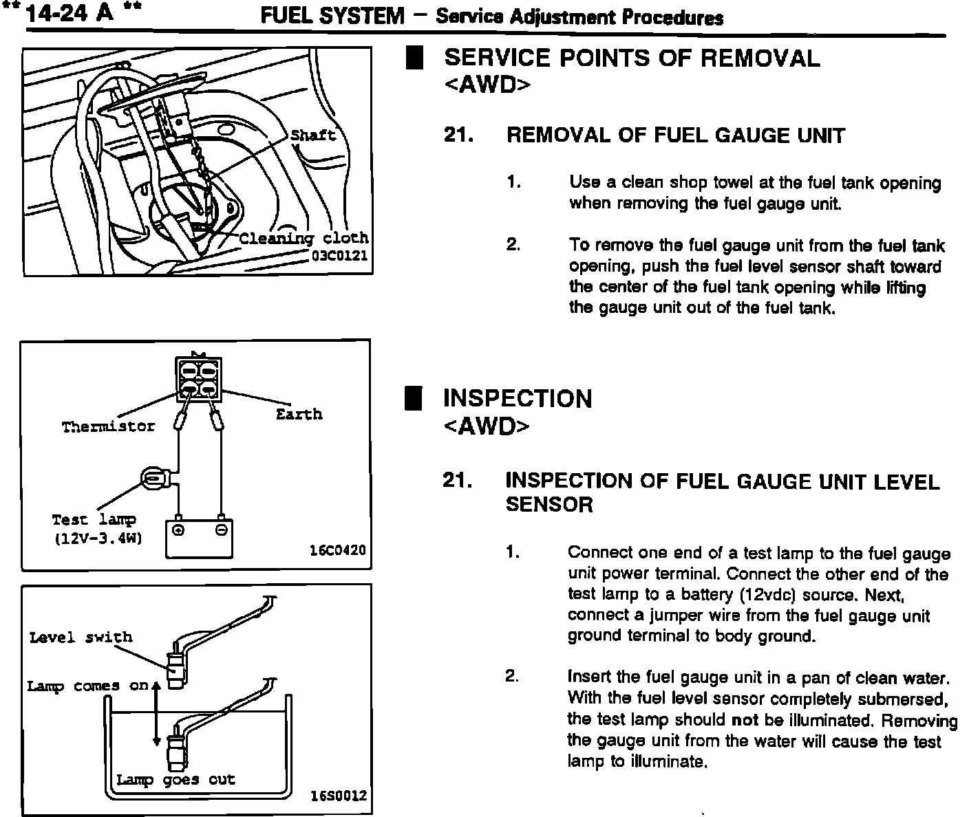 Service Manual - Fuel Gauge Sender Procedure Revision