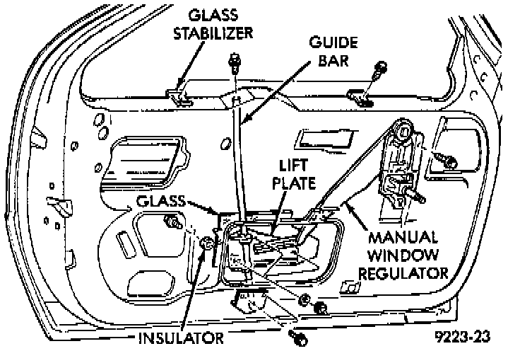 3. Raise glass to 25 mm (1 in.) below full up position and support glass lift plate to keep the glass from failing.