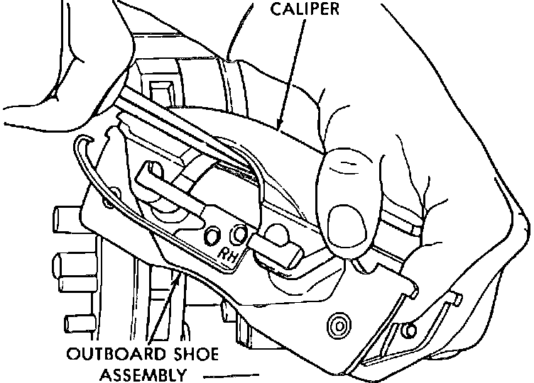 3. Position properly marked outboard pad hold-down spring into caliper as shown.