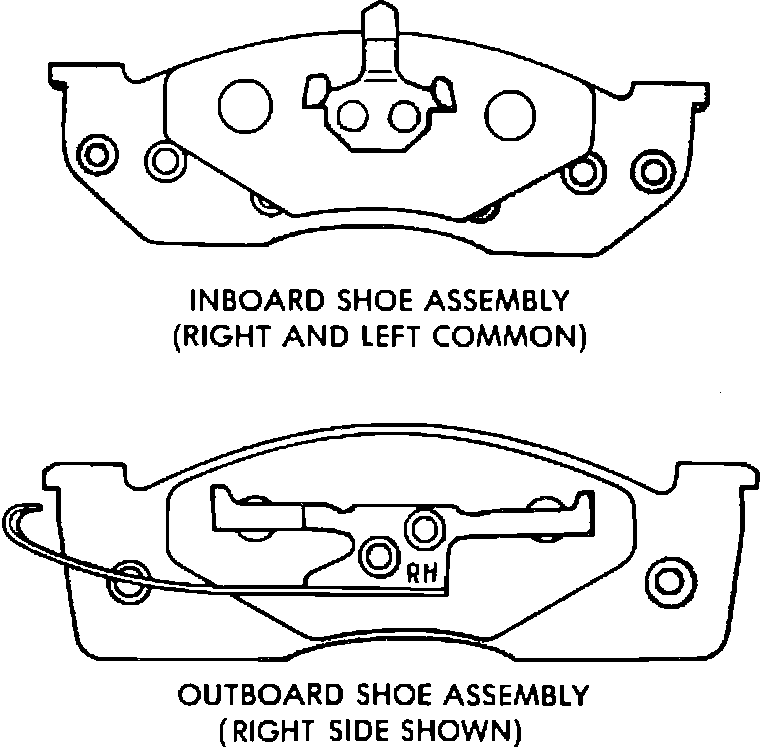 The inboard pads are interchangeable and may be used on either side of vehicle. The outboard pads are not interchangeable and are marked "L" for left side or "R" for right side of vehicle.