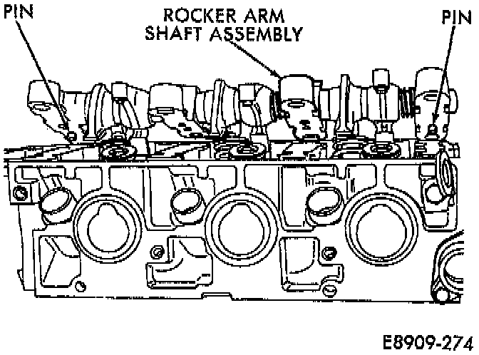 17. Loosen and remove the cylinder head bolts. Remove the rocker shaft assembly (note that the caps are pinned into the head and will only go on in one direction) Fig. 16.
