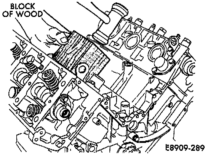20. Place a piece of wood against the cylinder head and strike it with a hammer. Repeat on all sides of the cylinder head until the head is loose Fig. 18.