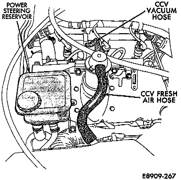 Fig. 4 CCV Hoses / Power Steering Reservoir: