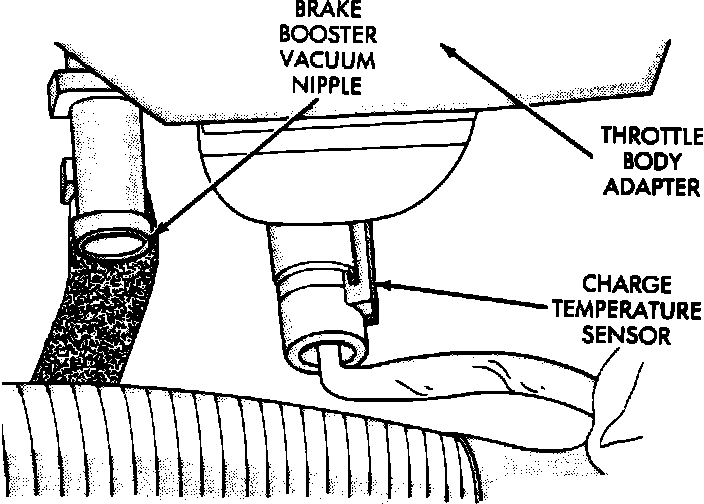 The Charge Temperature sensor is mounted in the throttle body adapter at the rear of the intake manifold.