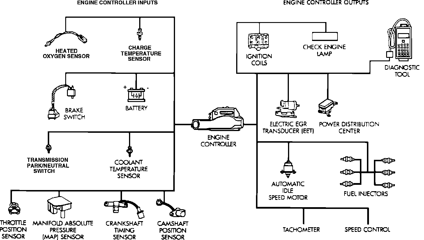 The engine systems in this vehicle are controlled by a Single Board Engine Controller (SBEC). This controller provides precise air/fuel mixture control for all driving conditions, and regulates ignition timing, emission control devices, cooling fan, charging system, and idle speed. The SBEC is a digital pre-programmed computer that has the ability to update and revise its programming to meet changing operating conditions.