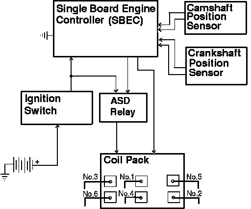 The SBEC also controls the Auto Shut-Down (ASD) Relay, which provides power to the ignition coil, fuel pump, oxygen sensor heater element, and fuel injectors.