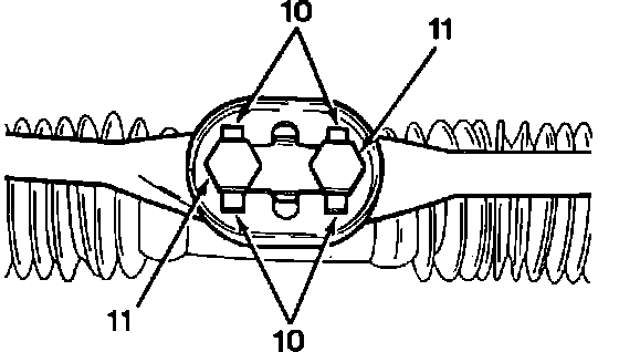 6. Fold back lock tab (10) on bolts (11) that attach tie rods to steering rack, then loosen bolts one or two turns.