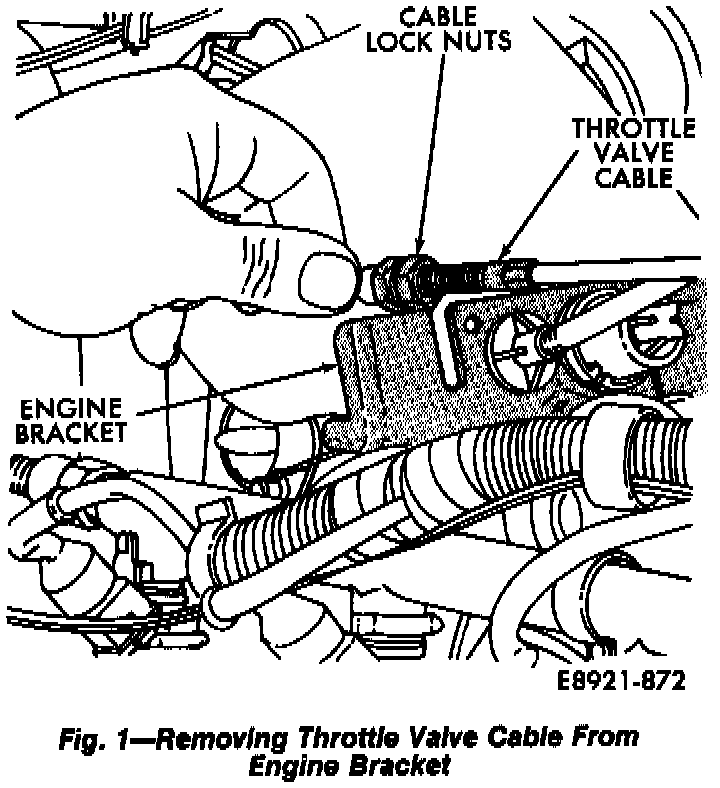 2. Loosen throttle valve cable locknuts and remove cable from engine bracket.