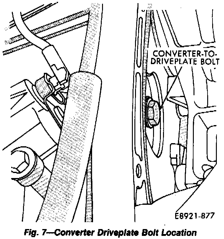 12. Remove bolts attaching converter to drive- plate.