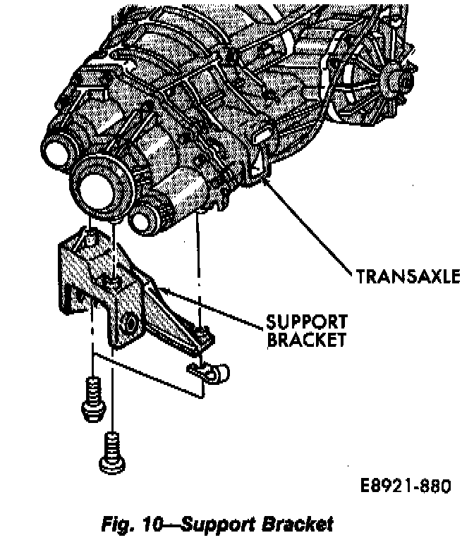 19. Install support bracket on transaxle. Tighten bracket bolts to 40 N.m (30 ft-lbs) torque.