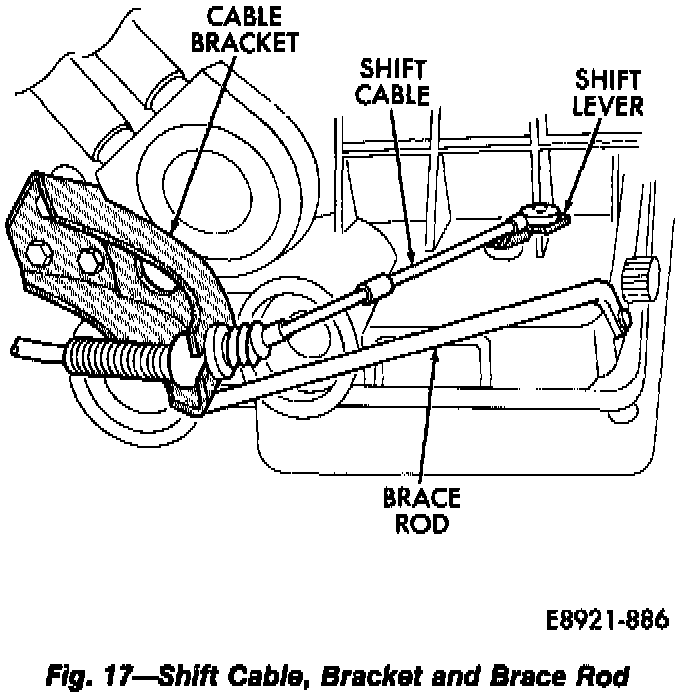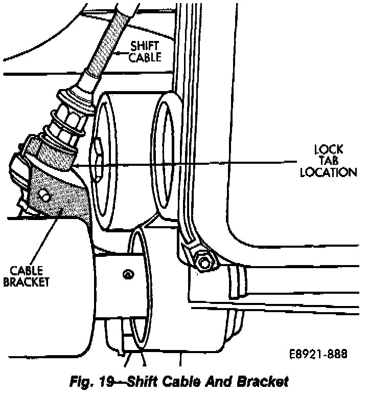 12. Install shift cable in bracket and connect cable to transmission shift lever.