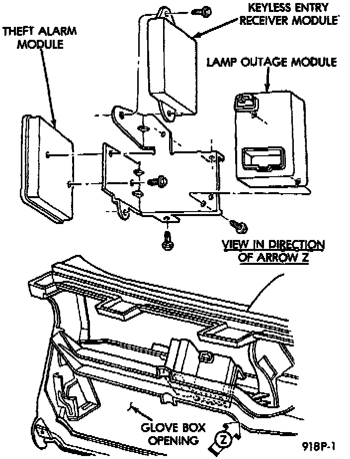5. Remove two screws attaching the Remote Keyless Entry Module to bracket.