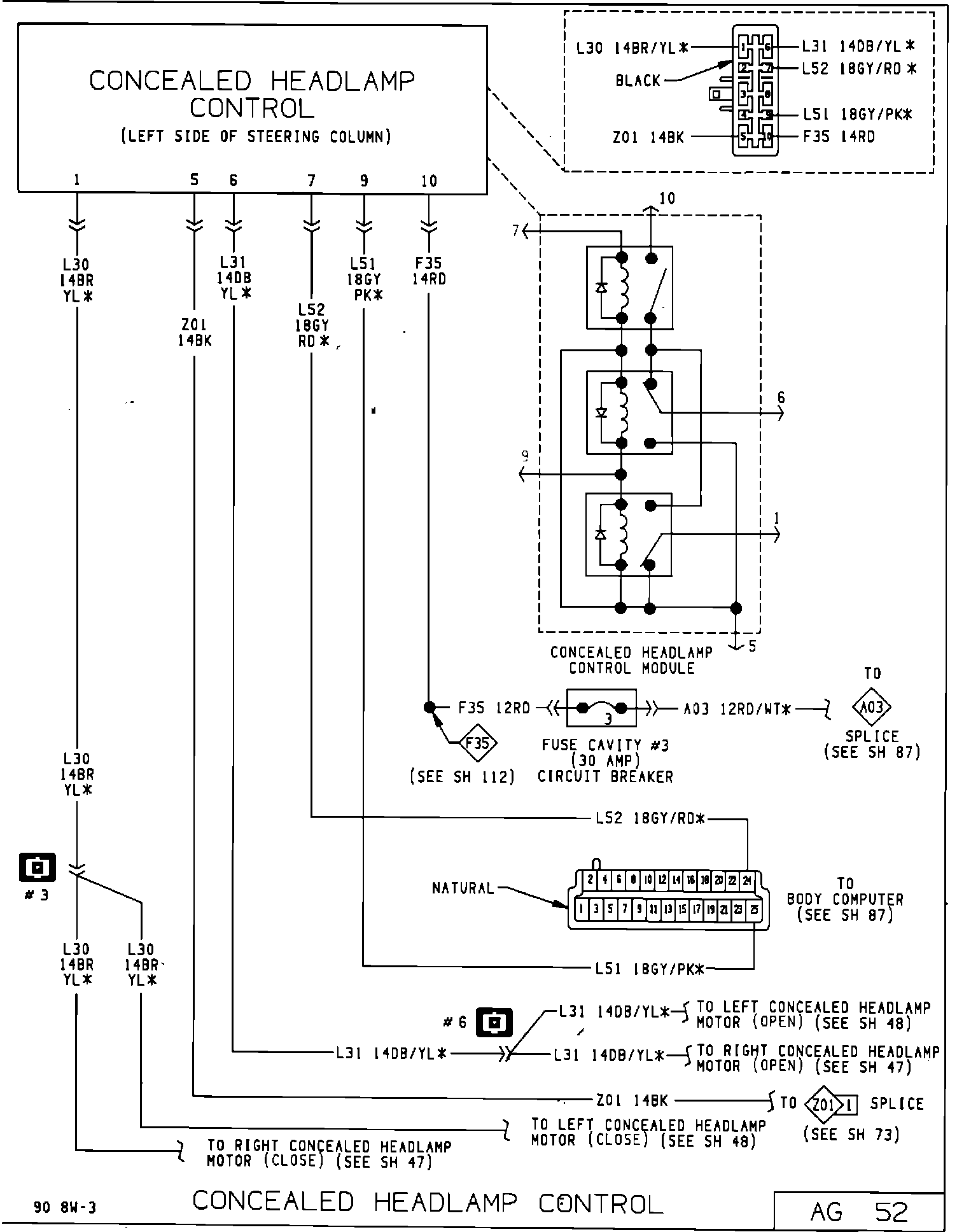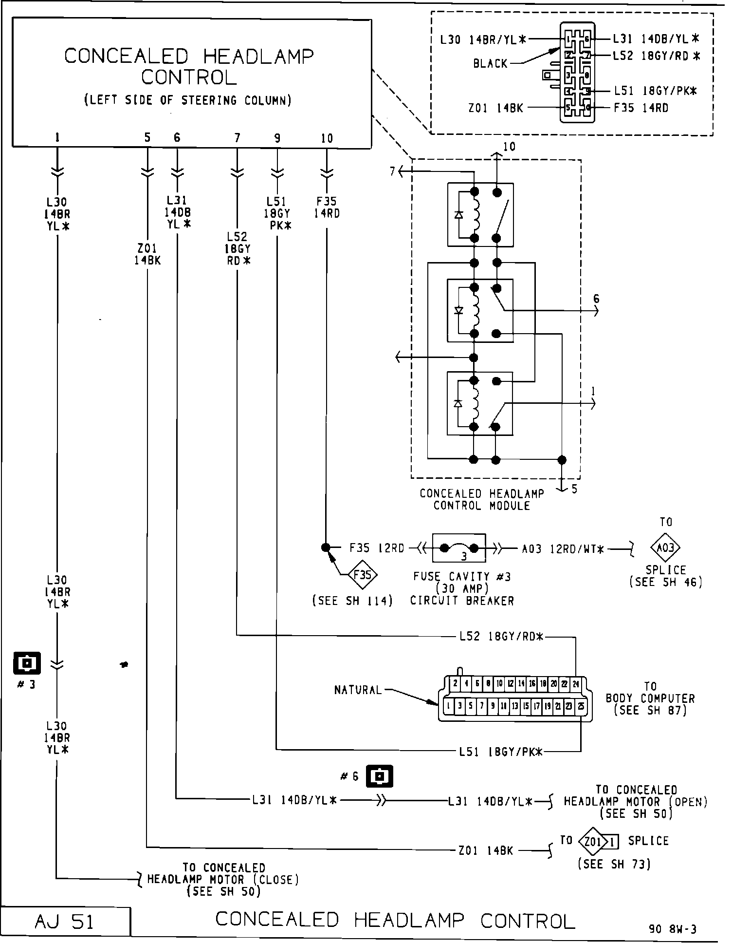 Pages AJ 51 and AG 52 of the 1990 G/J Body Wiring Diagrams Supplement, Publication No. 81-270-0103A have been revised. These diagrams now show the proper state (open or closed) of the concealed headlamp motor.