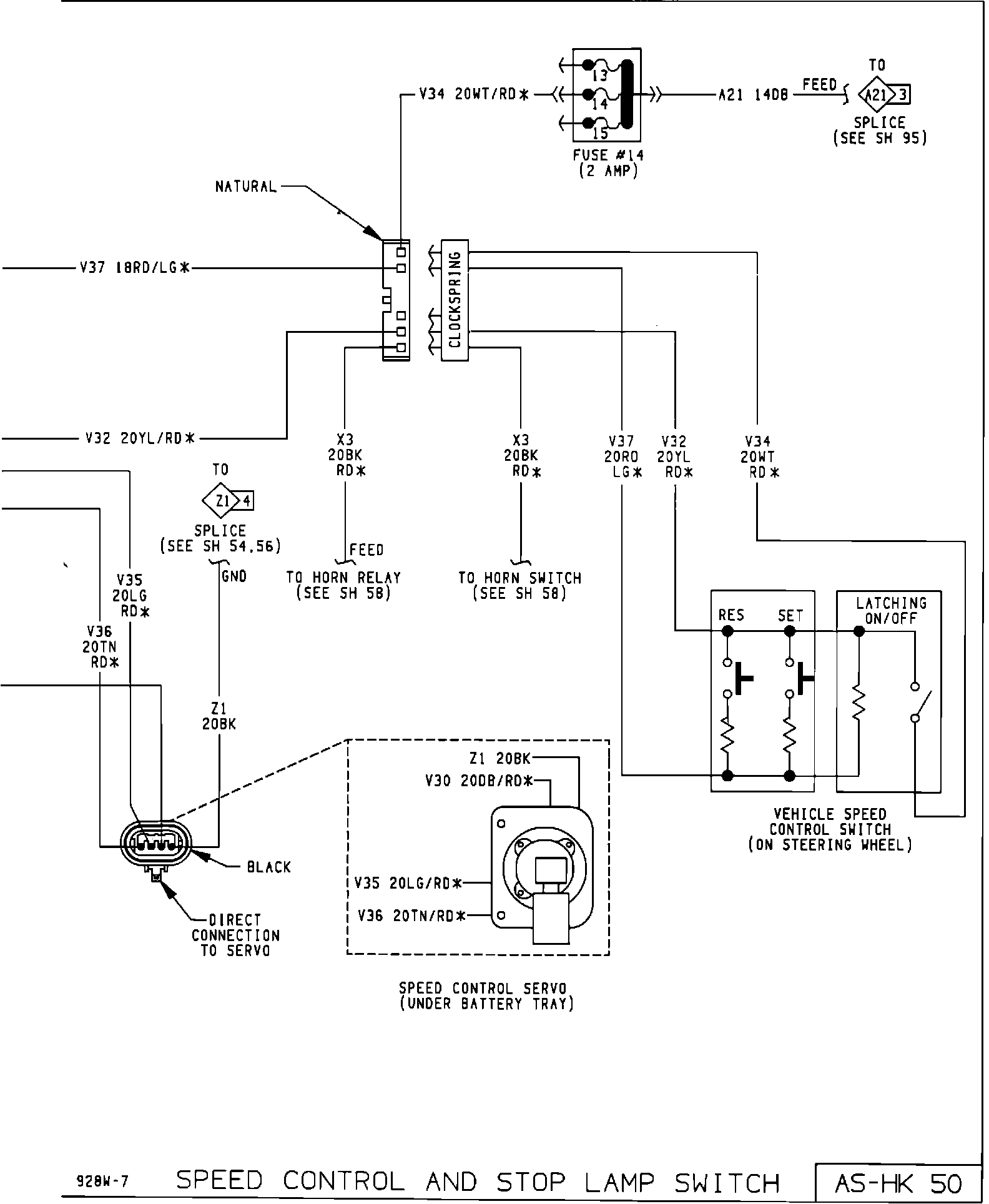 Page AS-HK 50 of the 1992 Front Wheel Drive/All Wheel Drive Van/Wagon Service Manual, Publication No. 81-370-2105, has been revised to show the proper speed control switch internal circuitry.