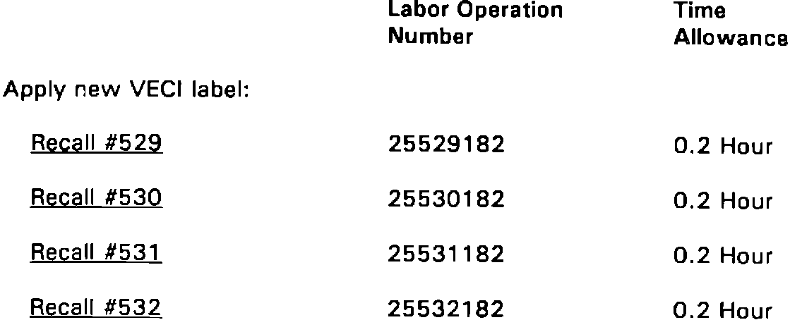 Vehicles requiring VECI label installation are divided into four separate recall groups depending on vehicle model and engine/emission system configuration. To ensure proper payment, be sure to use the correct labor operation number for the applicable recall as defined. The recall number can be identified from the Owner Recall Notification Form (lower right), from the applicable dealer Vehicle List or from DIAL System Function 70.