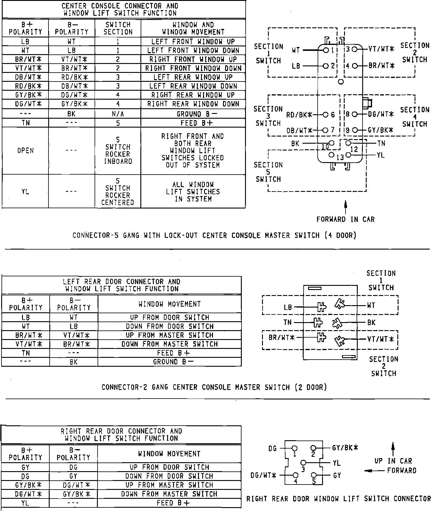 Power Window Connector And Switch Function 4 Door: