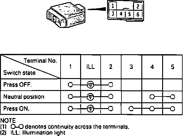 3. Operate switch and check continuity across as shown.