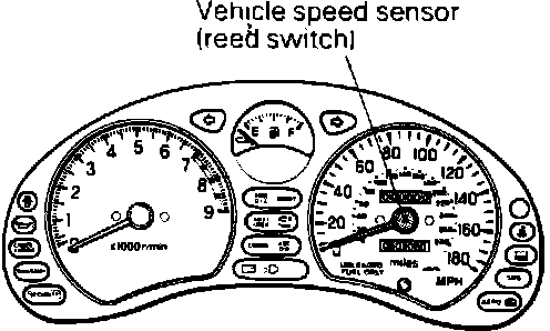 Vehicle speed sensor, located in the main instrument cluster in the speedometer unit.
