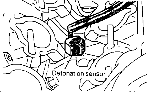 Detonation (knock) sensor, located between the front and rear cylinders, bolted to the detonation sensor mounting bracket.