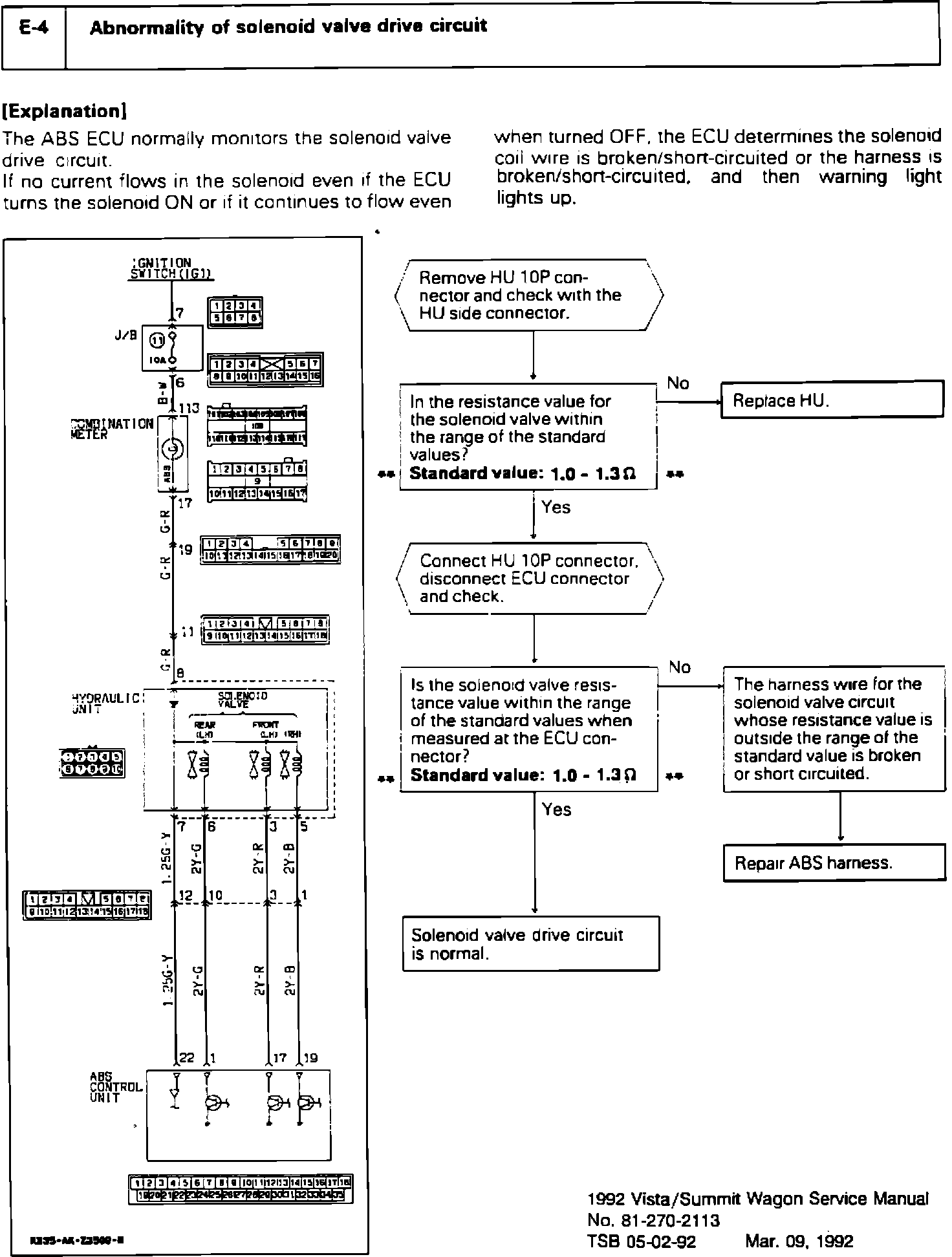 The ABS troubleshooting guide found in the listed manuals has a Standard Value that is incorrect. The corrected value is 1.0 - 1.3 ohms, please insert the corrected pages in the manuals. The revisions are printed in red and highlighted with ** asterisks**.