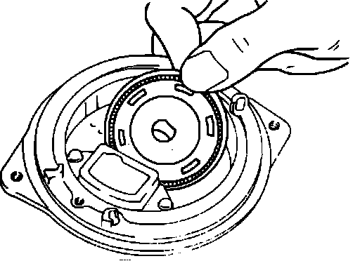 NOTE: Take care to install the disc with the correct side to the top as was observed during disassembly. Insure that the disc is clean and that the disc's slits are clear of any foreign matter.