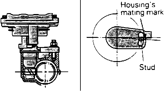 3. Install the distributor into the engine while aligning the distributor's installation flange with the center of the distributor installation stud.