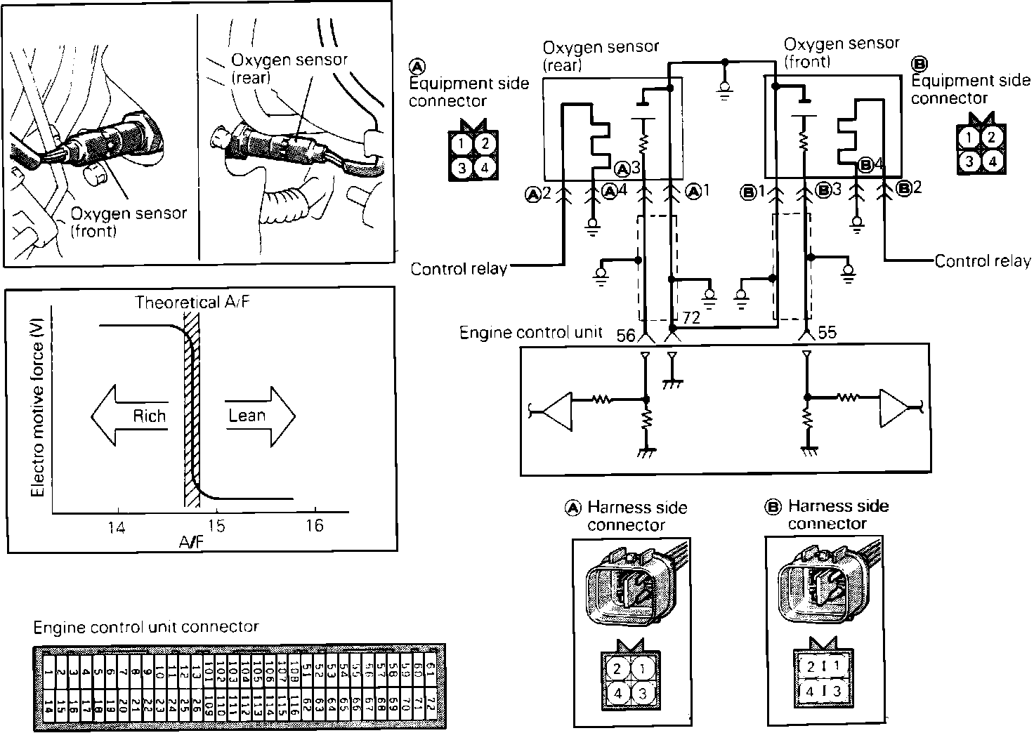 1. Disconnect the oxygen sensor and the ECM connectors.