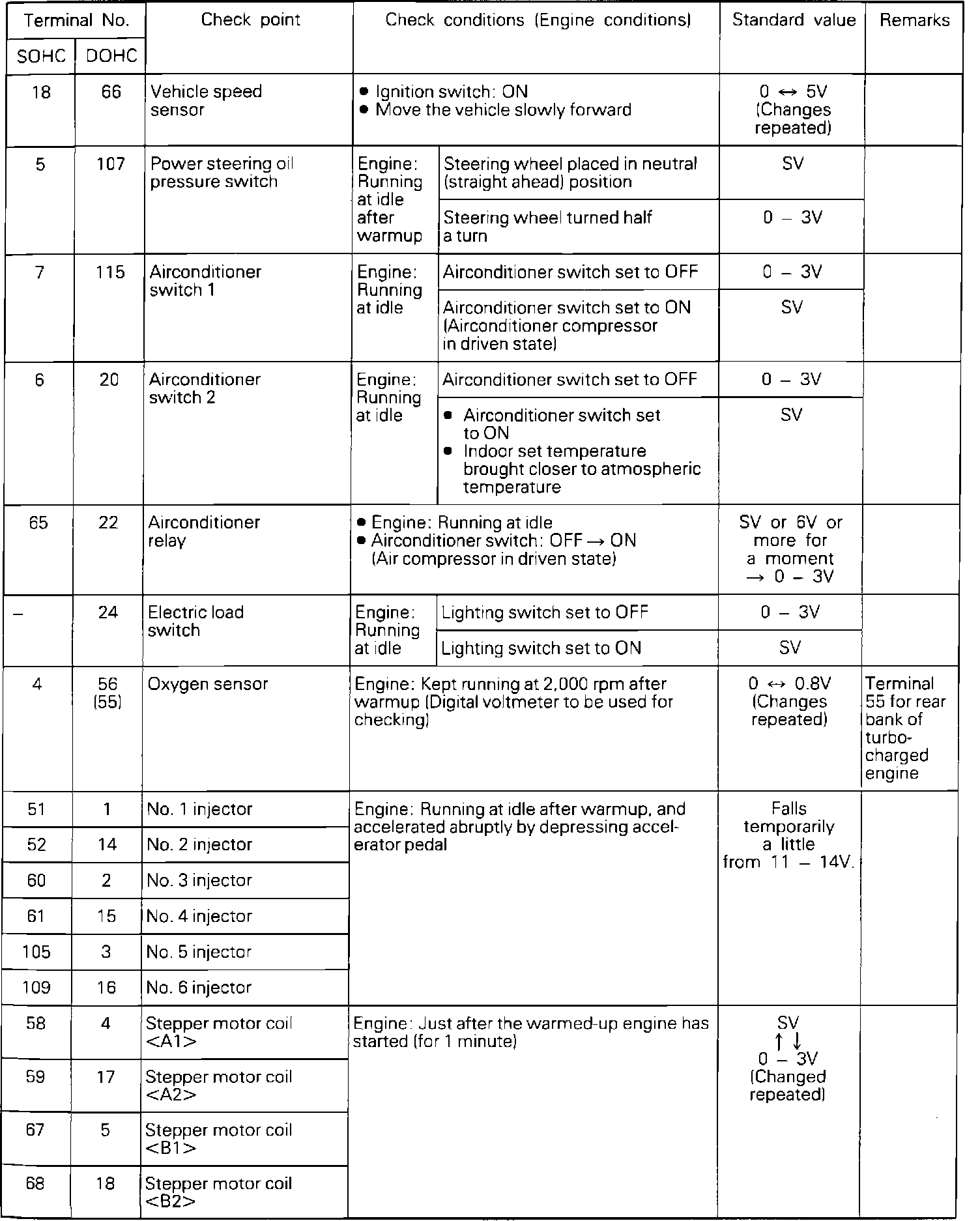 If voltage measured differs from that listed on the chart, check the corresponding sensor, actuator, or related electrical circuit. After repairs have been completed, recheck voltmeter readings to confirm that the repair has corrected the problem.