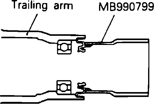 2. Apply suitable multipurpose grease to lip of new oil seal. Using oil seal installation tool No. MB990799 and a plastic hammer or equivalents, gradually and evenly press oil seal onto trailing arm with depression of oil seal facing upward, until it contacts shoulder on inside of inner arm.