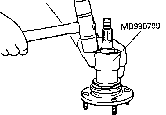 1. Using bearing removal tool No. MB990560 or equivalent, remove outer bearing and dust cover from axle shaft.