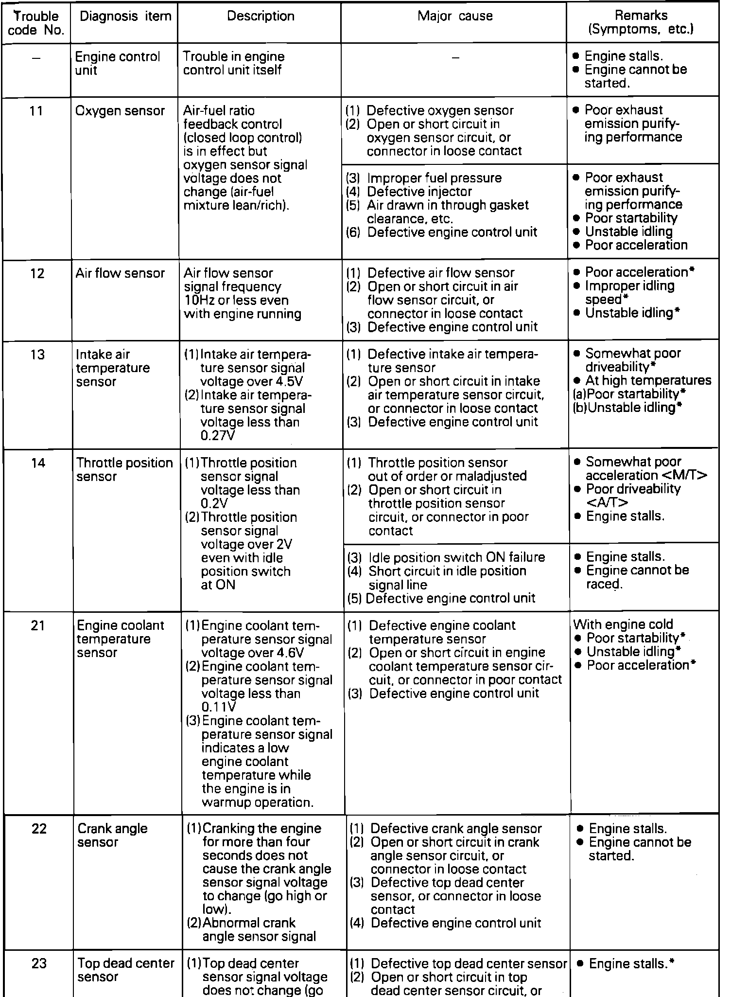 Trouble Code Chart:
