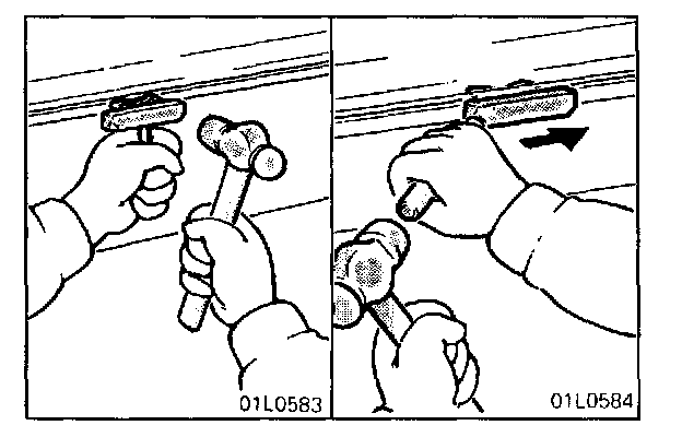 a. Knock oil pan remover tool No. MD998727 in deeply between oil pan and cylinder block.