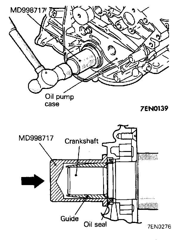 a. Install oil pump seal using seal installer tool No. MD998717, or equivalent.